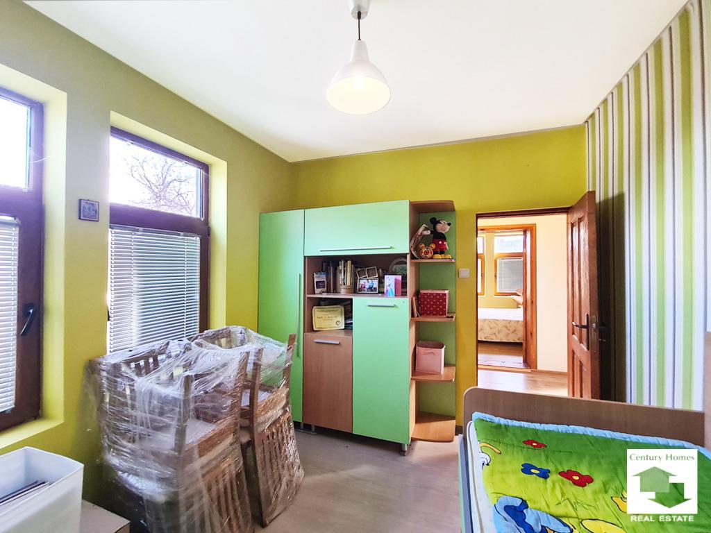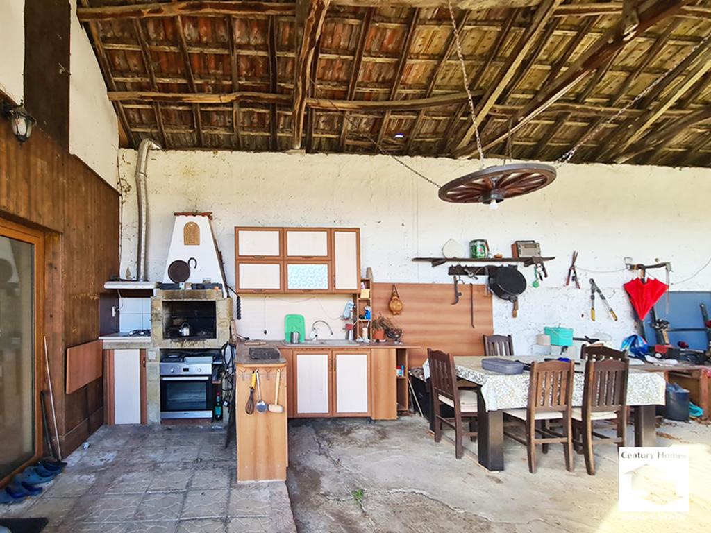 Къщата е с разгъната застроена площ от 140 кв. м., разпределена функционално на две нива. Основното ниво разполага с просторна кухня с трапезария и дневна, обединени в светъл и уютен общ обем, коридор с достъп до баня с тоалетна, спалня с директен излаз към двора и собствен навес – идеално място за отдих и сутрешно кафе. От това ниво вътрешно стълбище води към вкопана, масивна каменна маза, която впечатлява с размерите си и предлага множество възможности за използване – складово пространство, винарна или работилница.