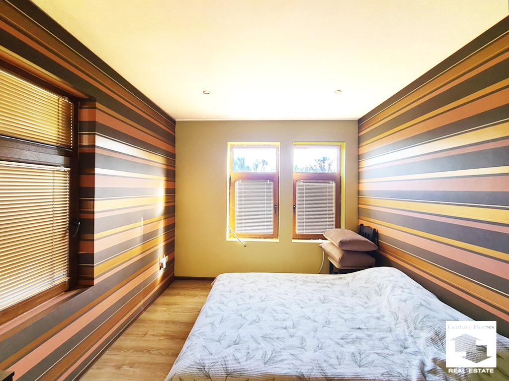 От мазата вито вътрешно стълбище отвежда към горното жилищно ниво, което включва три самостоятелни спални, баня с тоалетна и коридор с излаз към красива дървена веранда. От верандата се открива приятна гледка към двора и има удобен подход към външното пространство.