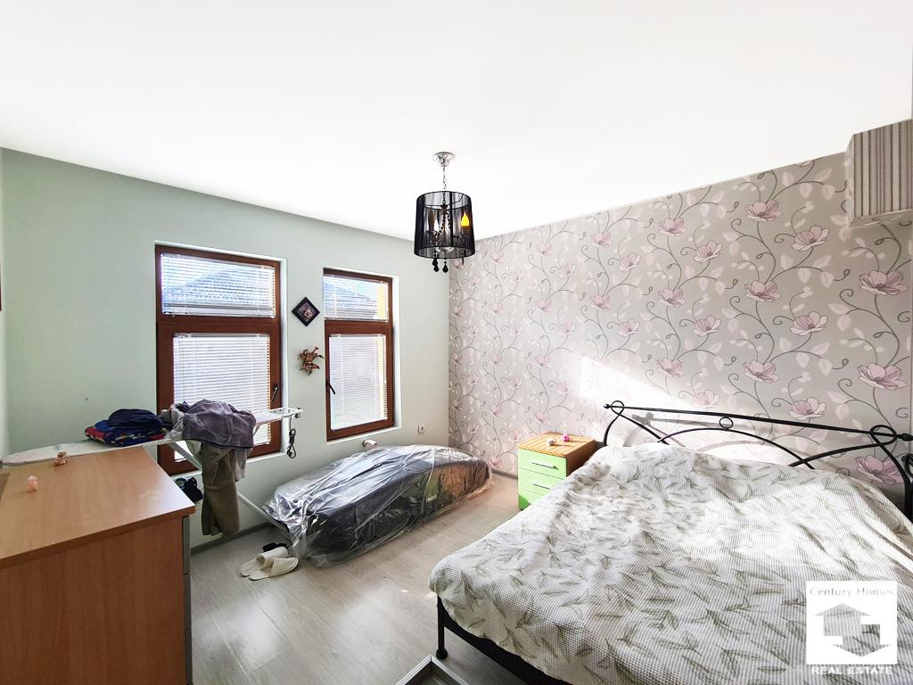 Имотът е в много добро състояние и се предлага частично обзаведен. Интериорът е изпълнен с внимание към детайла – PVC дограма, стилни дървени врати, подови настилки от ламинат и гранитогрес, стени с латекс и декоративни тапети. В цялата къща е изградена инсталация за парно отопление, като котел може да бъде монтиран в мазата. Към момента отоплението се осъществява чрез три климатика и камина на дърва, които осигуряват уют и комфорт през студените месеци. Южното изложение гарантира изобилие от естествена светлина през целия ден. Имотът разполага с ток, вода и септична яма.