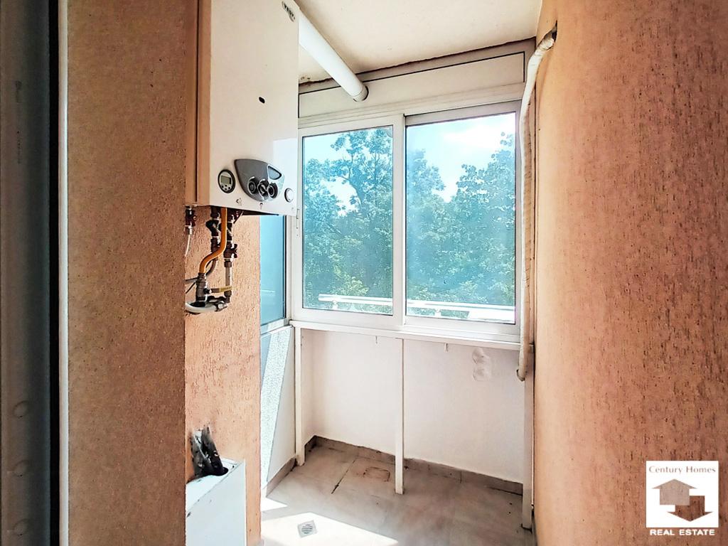 Изложението е юг/изток, което осигурява много естествена светлина и топлина през целия ден. Апартаментът се продава напълно обзаведен, с готовност за нанасяне или отдаване под наем. Състоянието е много добро – подовите настилки са ламинат и теракот, стените са освежени с латекс, дограмата е PVC, а сградата е с външна топлоизолация. Жилището е газифицирано, което гарантира икономично отопление през зимните месеци.