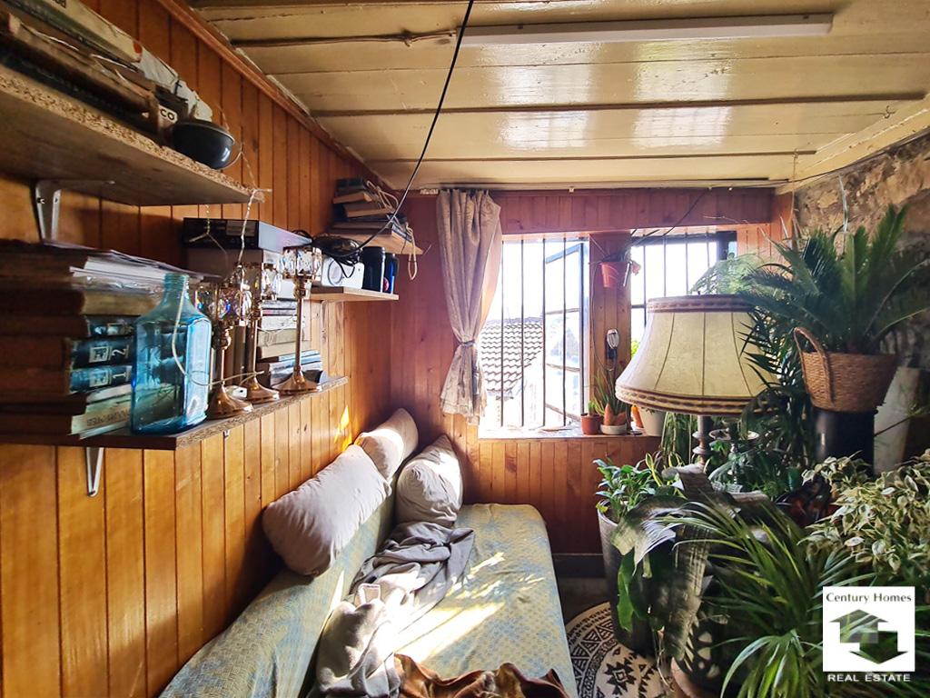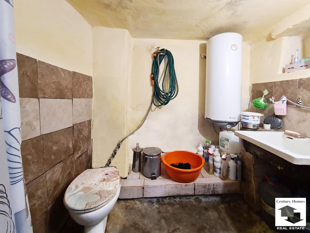 Първият етаж включва дневна с кухненски бокс, спалня, килер, баня с тоалетна и веранда с излаз към улицата. Пространството се нуждае от ремонт и обновяване, което дава възможност за адаптиране според вкуса и нуждите на новия собственик.