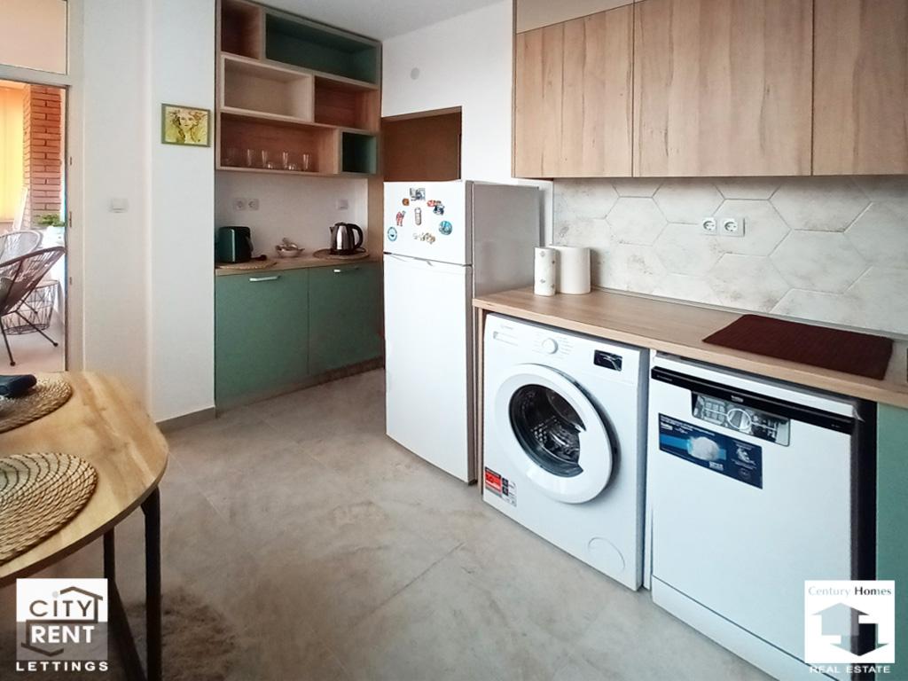 We offer for rent a fully furnished one-bedroom apartment, located on the 4th residential floor of a brick building, in one of the most preferred neighborhoods of Veliko Tarnovo - Kolyu Ficheto. With an area of 47 sq. m., the apartment consists of a hallway with a large built-in wardrobe, bathroom, separate toilet, bedroom furnished with a double bed, sofa, wardrobe, chest of drawers, bedside tables and a TV table, sharing a terrace with a cozy kitchen with a dining area. The kitchen has modern equipment - glass ceramic hobs, extractor hood, built-in oven, refrigerator, dishwasher and washing machine. The apartment is south-facing and heated with air conditioning. Nearby are the National Military University "Vasil Levski", a school, two kindergartens, a park, a MALL, plenty of shops and restaurants, and a bus stop. Please note that all original property prices are in Euros. All prices in GBP and USD are approximate and valid only on the day of uploading the corresponding property.