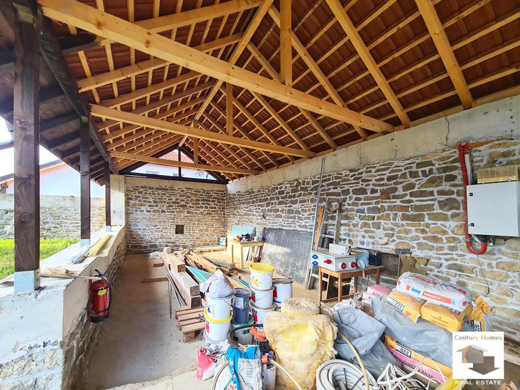 A renovated two-story house is offered for sale in the picturesque village of Novo Selo, just 15 min. drive from Veliko Tarnovo. The property has a living area of 82 sq. m and offers a combination of authentic character, comfort, and modern amenities. The house faces southeast and has undergone a complete renovation, featuring new PVC window frames, external insulation, and interior walls painted with latex. The ground floor consists of a spacious open-plan living room with a kitchen and dining area, showcasing beautiful stone walls and polished concrete flooring, as well as a room prepared for a bathroom/WC. An external staircase leads to the second floor, where you will find a corridor, two bedrooms with laminate flooring, and another room prepared for a bathroom with toilet. The plot is flat, measuring 2,600 sq. m, enclosed by a stone and wire fence, and benefits from convenient access from two streets—north and south—a significant advantage. On the northern side, a solid stone shelter has been built, suitable for creating a barbecue area or summer kitchen, and next to it stands a single-story stone outbuilding with a concrete slab, offering the option to be extended and transformed into additional living space. A second outbuilding provides extra storage, while the spacious yard allows for the creation of various functional outdoor areas according to the preferences of the future owners. The village is well-developed, peaceful, and serviced by regular transport to Veliko Tarnovo, making the property suitable both for permanent living and as a holiday home, conveniently located close to all amenities of the nearby city. Please note that all original property prices are in Euros. All prices in GBP and USD are approximate and valid only on the day of uploading the corresponding property.