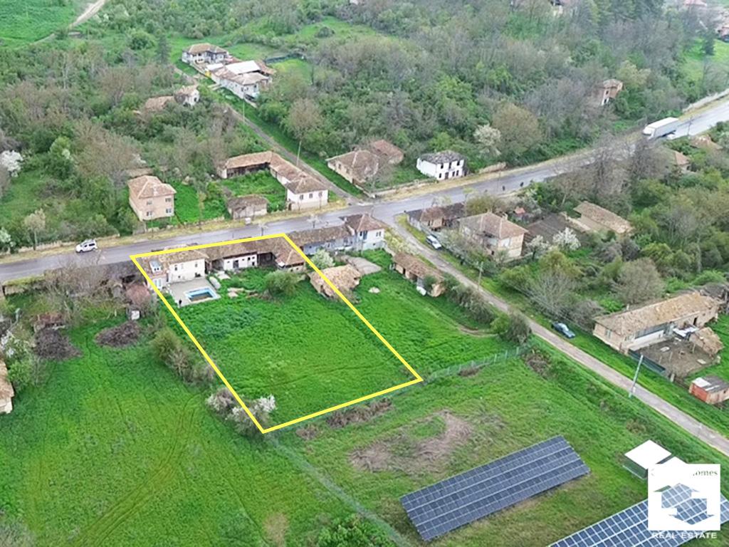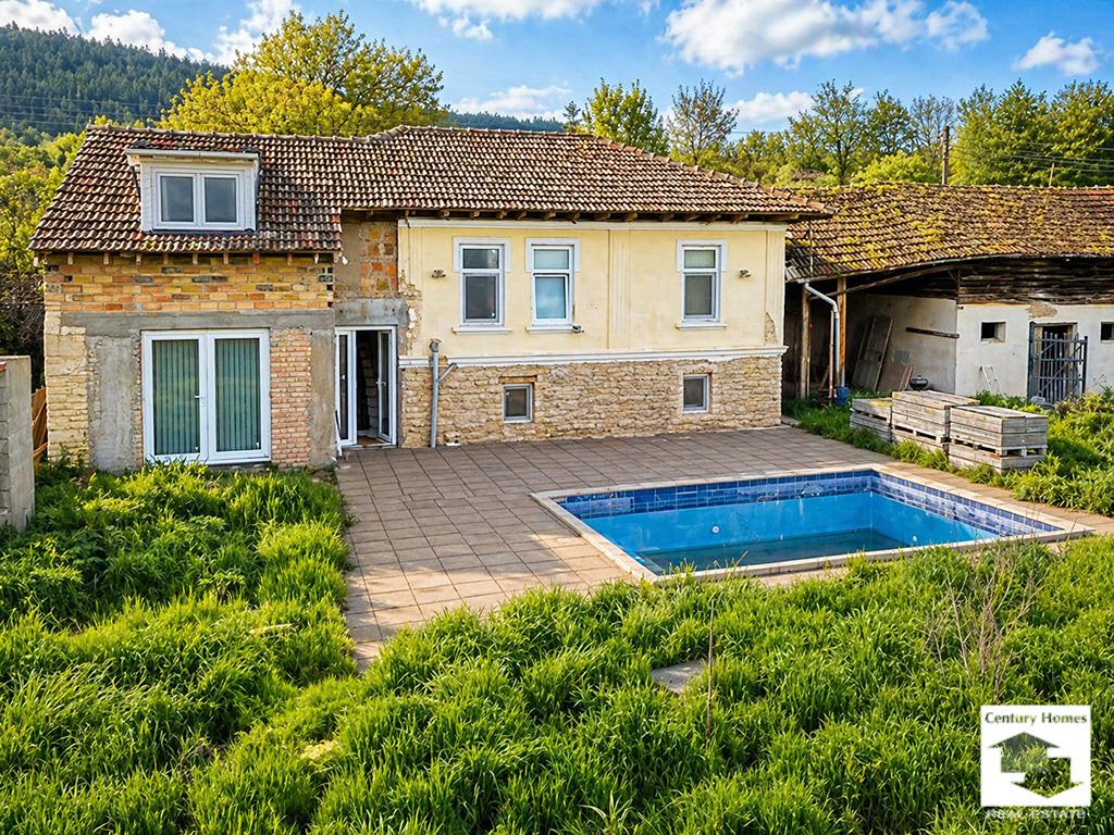 Two-story house with a flat yard, swimming pool and outbuilding in the village of Lom Cherkovna, an hour from Veliko Tarnovo