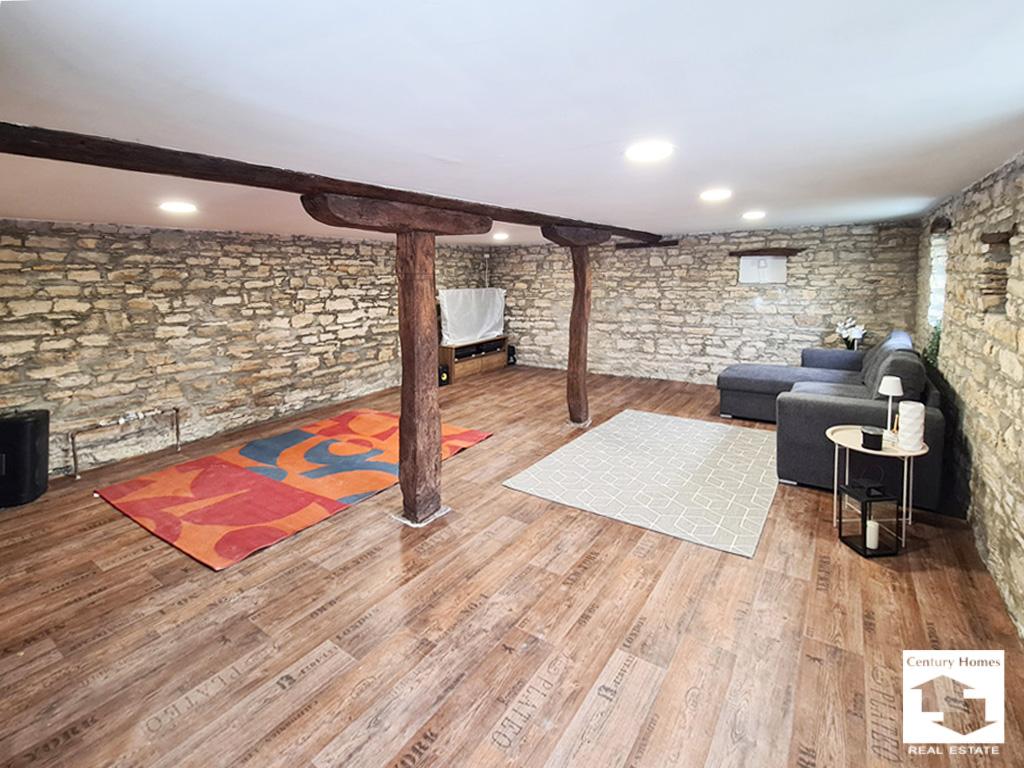 The house is sold partially furnished and is in good condition, with PVC window frames, updated electrical and plumbing installations, wooden interior doors, and flooring made of wood, screed, and terracotta tiles. The walls are plastered and ready for customization according to the new owner’s taste.