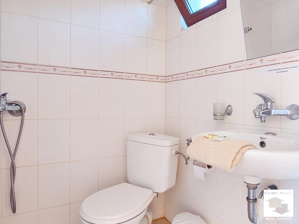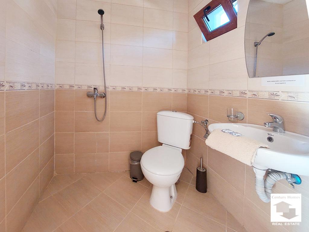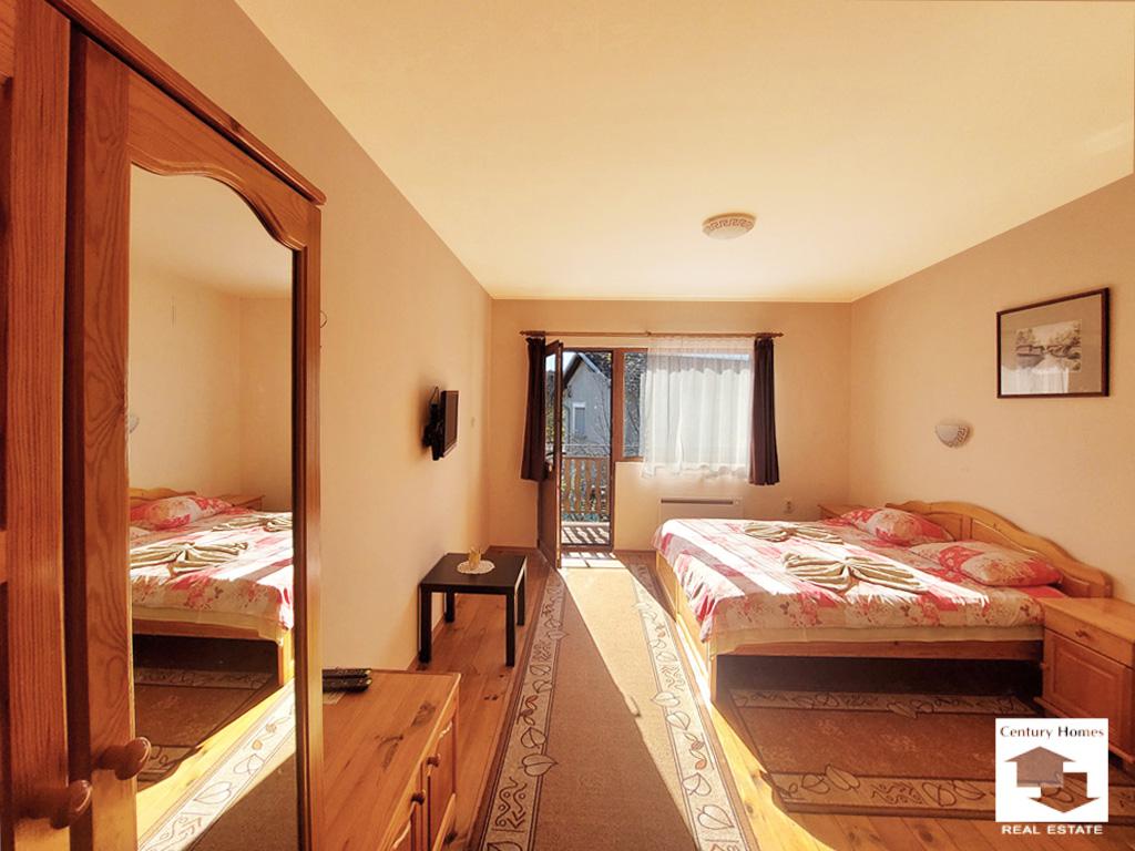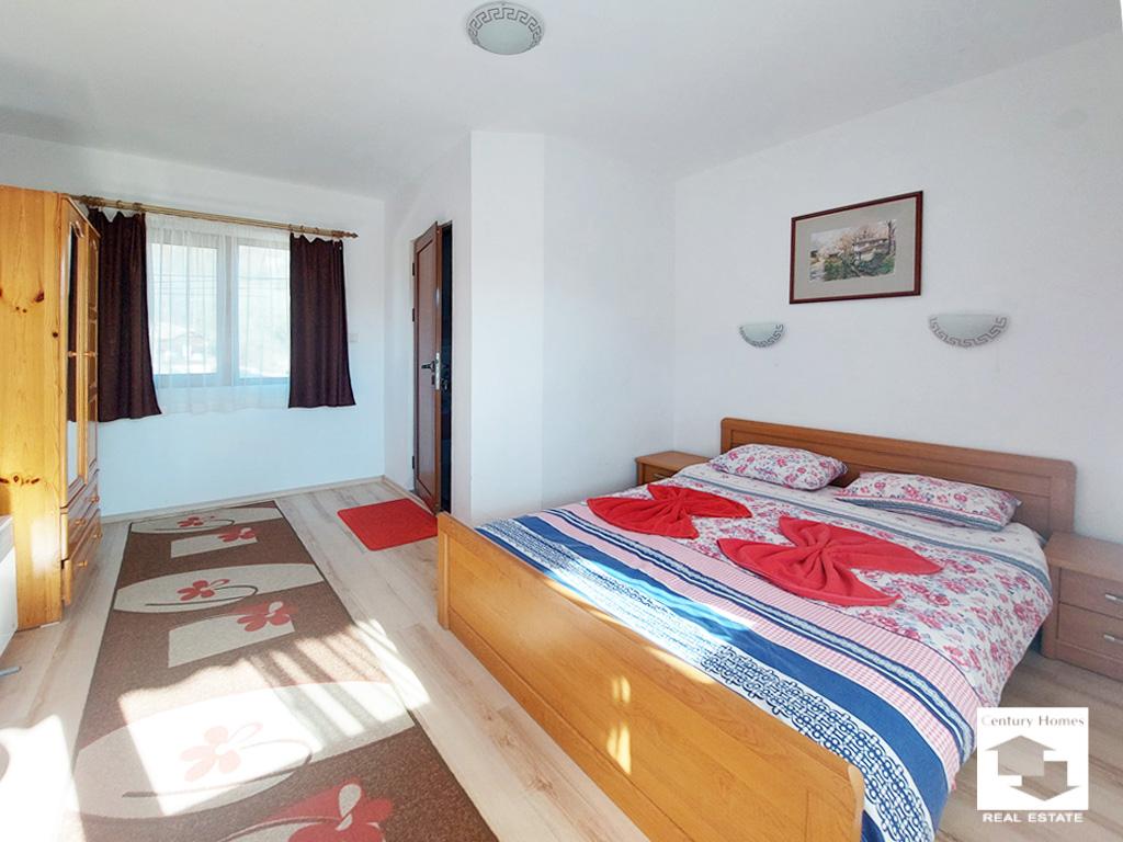 Външно стълбище води към тераса на втория етаж, откъдето се влиза в още четири самостоятелни спални, всички с пълно обзавеждане, двойни легла и собствени санитарни възли, като две от тях разполагат и с допълнителни единични легла. Интериорът е изпълнен с качествени материали – PVC дограма, дървени врати, ламинат и гранитогрес, а стените са боядисани с латекс. И двете къщи са с външна изолация и са с южно изложение, като имотът разполага и с две септични ями.