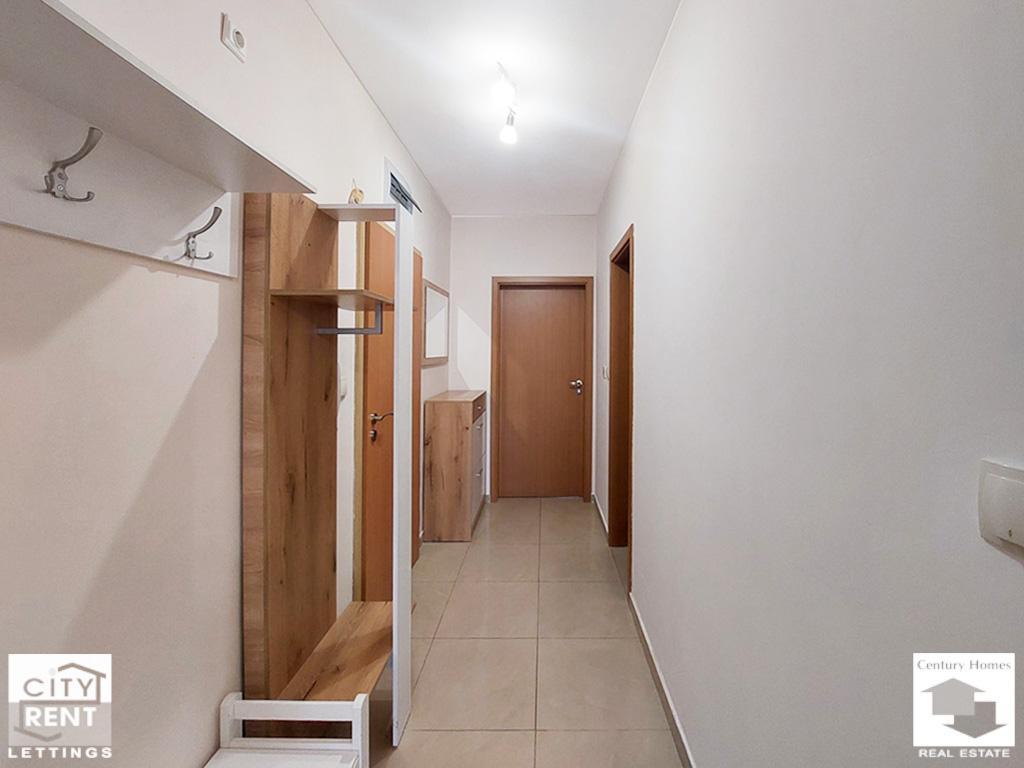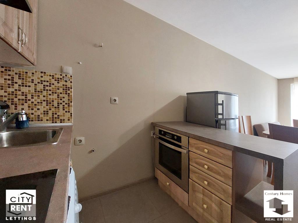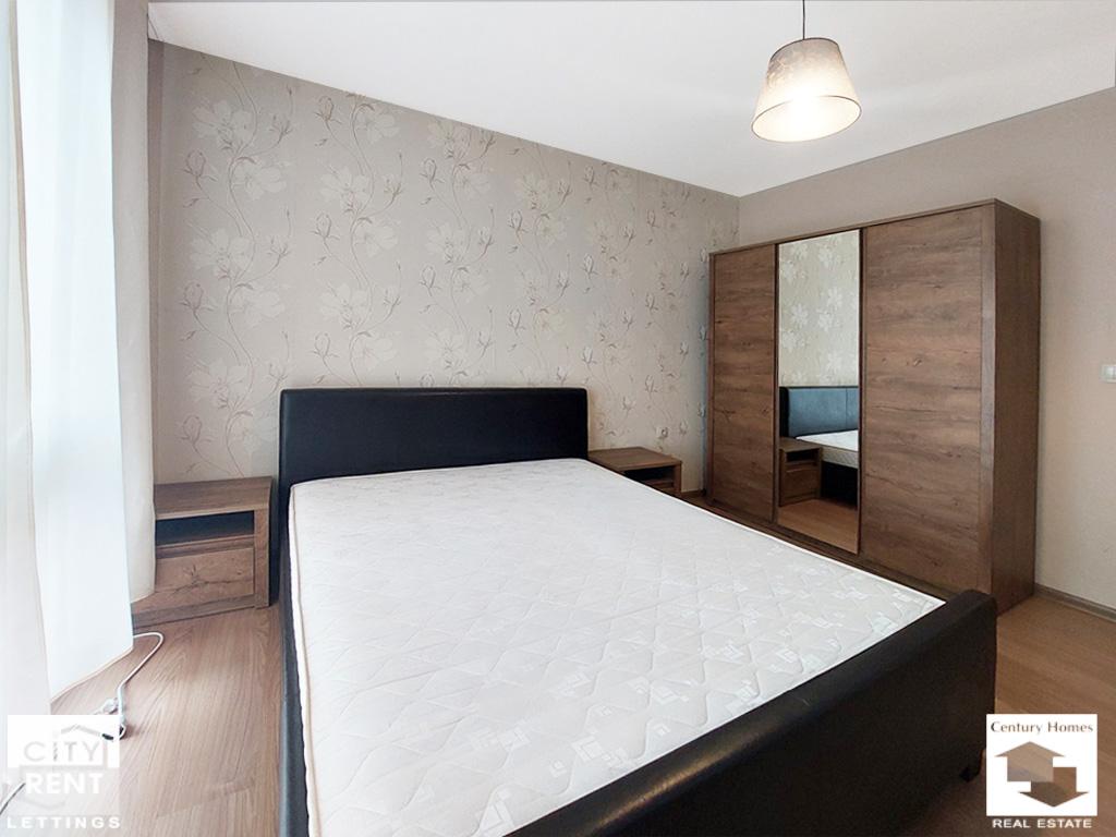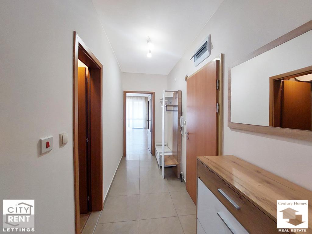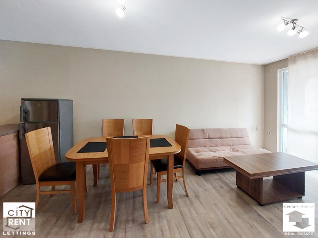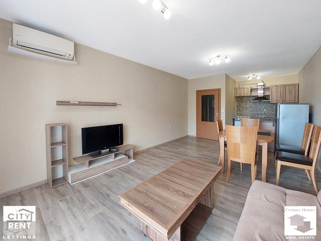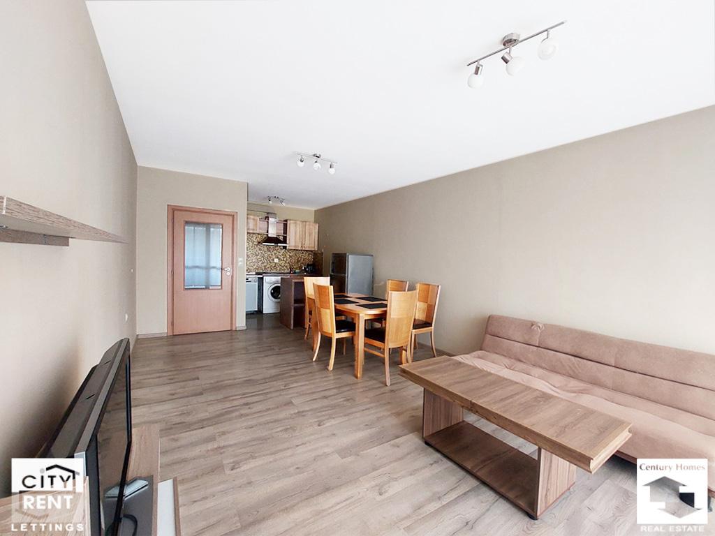 Предлаганото под наем жилище се намира в сграда ново строителство в центъра на гр. Велико Търново. Жилището е разположено на 2-ри етаж, с изложение Юг/Север и площ от 65 кв. м. Апартаментът се състои от всекидневна с трапезария и кухненска част с излаз на южна тераса, една спалня обзаведена с двойно легло, нощни шкафчета, гардероб и скрин, баня с тоалетна и входно антре. Жилището се отдава напълно обзаведено и оборудвано. Отоплението е решено с климатик в дневната и конвектор в спалнята. Интериорът включва PVC дограма, MDF врати, стени с латексно покритие и подови настилки с ламинат и теракота. Дневната е обзаведена с диван, масичка за кафе и телевизор, а трапезна маса със столове и стилно кухненско обзавеждане допълват интериора на помещението. Кухнята е оборудвана с хладилник, стъклокерамични котлони, вградена фурна, абсорбатор, съдомиялна и пералня. Сградата е ново строителство, със светли и поддържани общи части, асансьор и външна топлоизолация. Имотът е с отлична локация – в близост до парк, училище, детска градина, магазини и заведения, както и с удобен достъп до редовен градски транспорт. Моля, обърнете внимание, че актуалните цени са в евро. Цените в британски паундове и щатски долари са приблизителни и актуални към деня на публикуването на съответния имот.
