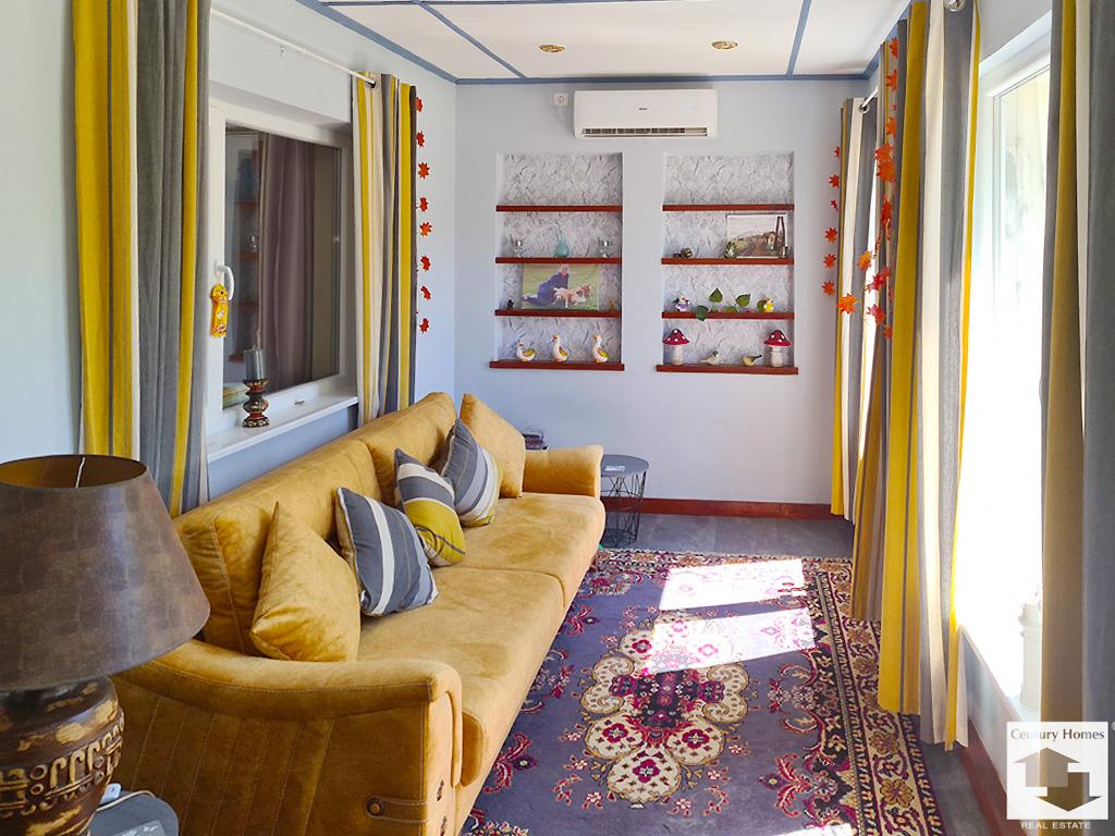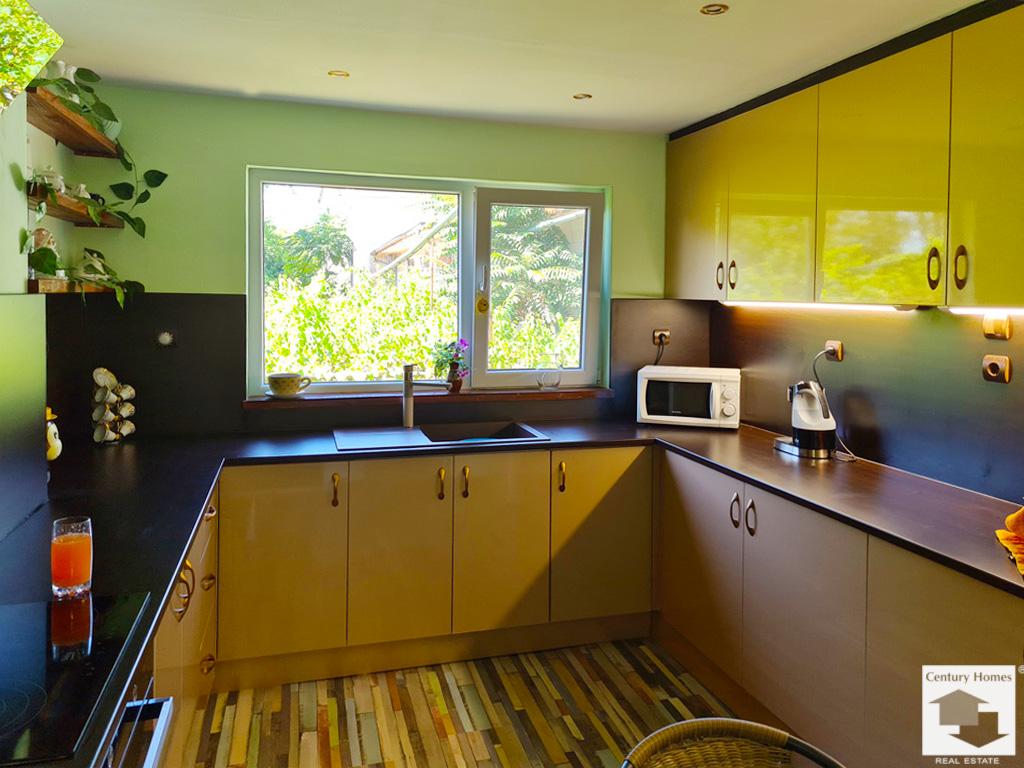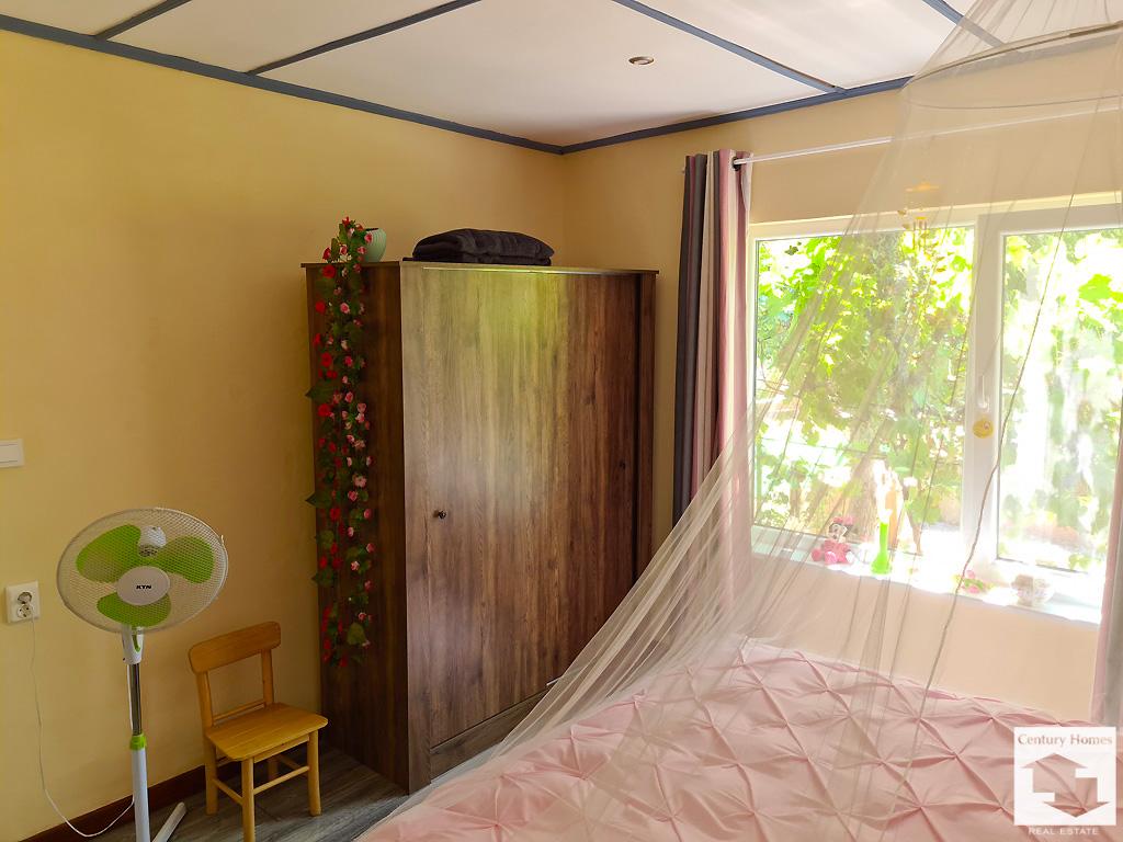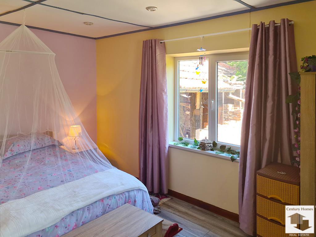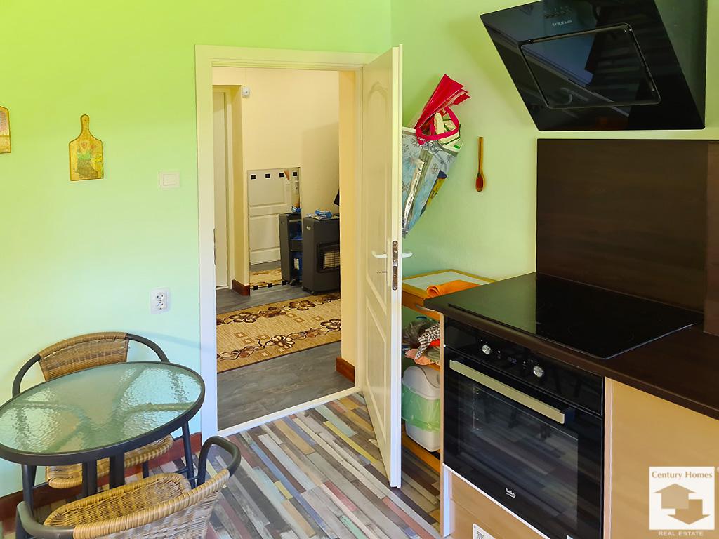 Пристройка до къщата (33 кв. м.) е също обновена и обособена като лятна кухня с трапезария и кът за почивка, преминаваща към коридор, даващ достъп до втора баня с тоалетна, както и стъпала към просторна маза под къщата.
