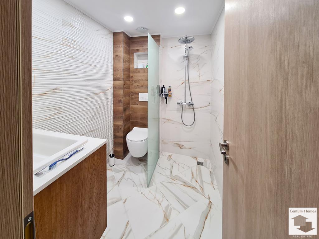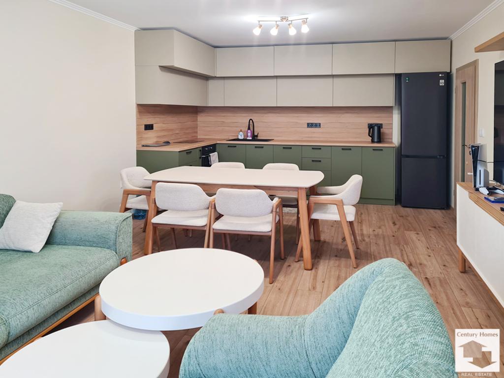 Отдаваното под наем жилище се намира в сграда ново строителство, в кв. Картала във Велико Търново. Позициониран на 2 жилищен етаж, апартаментът разполага с отворена концепция дневна, кухня и трапезария, две спални, една от които е със собсвена баня / WC, друга баня с тоалетна се намира в коридора и обща за трите стаи тераса. Жилището се отдава напълно обзаведено. Кухнята е оборудвана с готварска печка, абсорбатор, хладилник, кафе машина и електрическа кана. Разтегателна маса за хранене, удобен диван, тв секция, маса за кафе и телевизор допълват обзавеждането на просторната дневна. Двете спални са обзаведени с двойно легло, гардероб и скрин. Едната разполага и с телевизор. На разположение на наемателите са пералня и сушилня. Интериорът включва PVC дограма, MDF врати, подово покритие от ламиниран паркет и стени с латекс. Сградата е с външна изолация, а апартаментът е с климатици във всяка стая, което заедно с южното изложение гарантира приятна температура в жилището през зимните месеци. Жилището се намира в близост до парк. Моля, обърнете внимание, че актуалните цени са в евро. Цените в британски паундове и щатски долари са приблизителни и актуални към деня на публикуването на съответния имот.