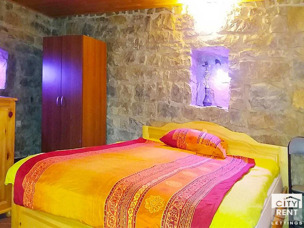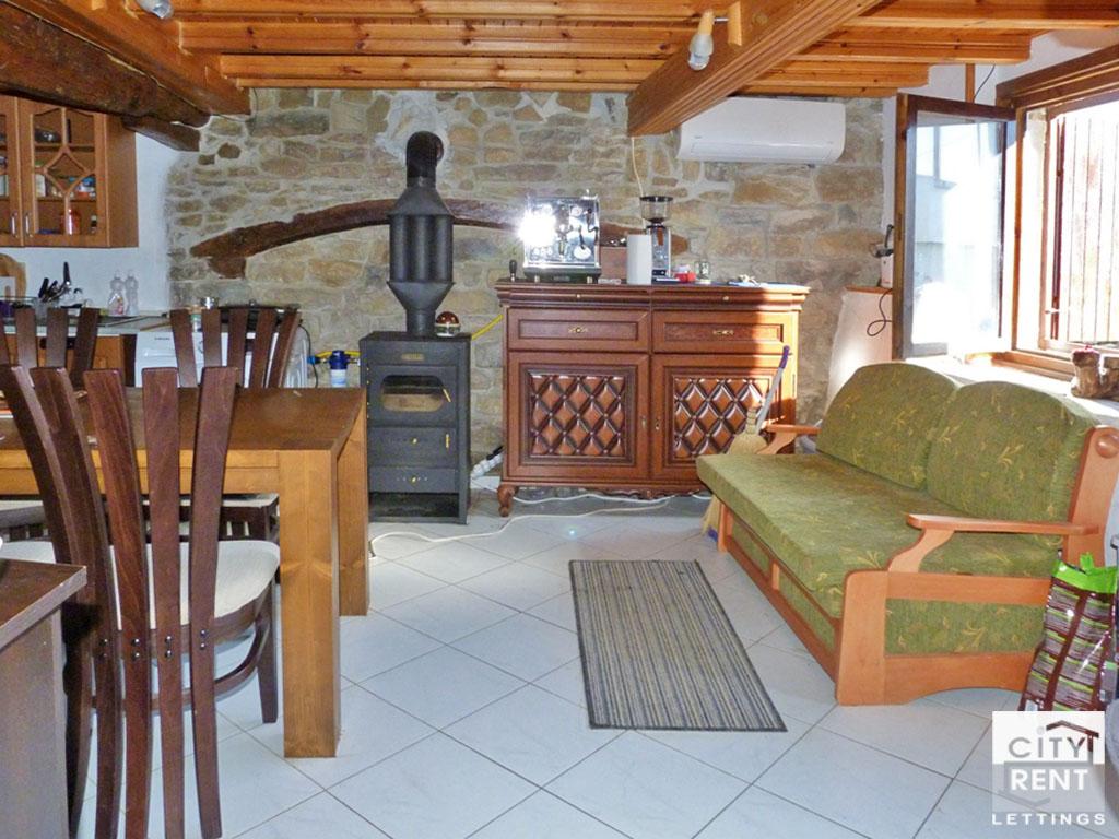 Изцяло реновирана, топлоизолирана и обзаведена къща в традиционен български стил с 3 спални и кабинет, само на 10 минути от центровете на Велико Търново и Горна Оряховица. Къщата е част от комплекс от две къщи и е с жилищна площ от над 120 кв. м., разпределени на два етажа. На първият етаж се помещават уютна дневна с трапезария, спалня, баня с тоалетна. На втория етаж са разположени две спални, лоби/кабинет, баня с тоалетна, голяма веранда. Интериорът е в следната степен на завършеност - подовите настилки са дюшеме, гранитогрес , теракот в санитарните помещения, стените са на латекс, дограмата и вратите са дървени. Имотът се предлага под наем напълно обзаведен в много добро състояние. Отоплението се осъществява посредством климатици, има и камина на дърва в дневната. Къщата е масивна – тухлена. Разполага с идеално поддържан двор с площ около 2 декара. Високи каменни зидове около къщата. Централна канализация. Към къщата има 2 паркоместа, едното от които е покрито и е зад дървени порти. Селото е единственото в страната, което разполага с хипермаркет с огромен асортимент. Има и всички необходими удобства - училище, детска градина, църква, библиотека, лекар, зъболекар, магазини, поща, банкомат, чудесно покритие на всички мобилни оператори, високоскоростен оптичен интернет, жп гара, стадион, екопътеки към околните манастири и села. Отлично уреден обществен транспорт - на всеки 20 минути има автобуси за Велико Търново и за Горна Оряховица. Моля, обърнете внимание, че актуалните цени са в евро. Цените в британски паундове и щатски долари са приблизителни и актуални към деня на публикуването на съответния имот.