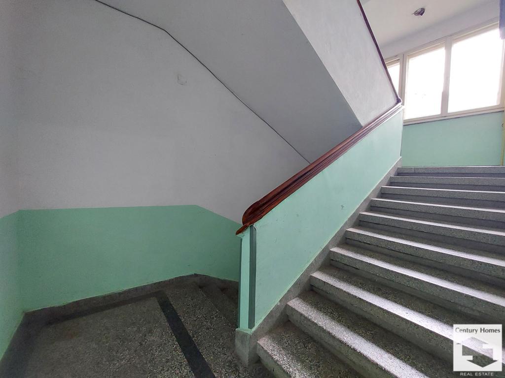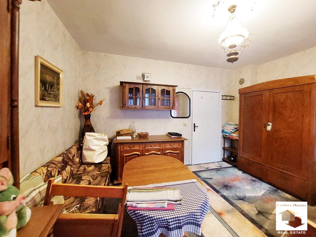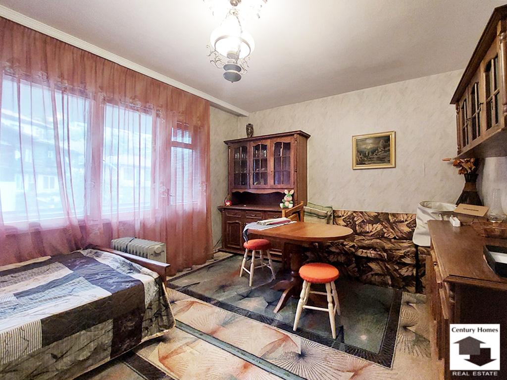 The property has an area of ​​31 sq. m. and consists of a spacious room, furnished with a double bed, bedside table, wardrobe, buffet, dining table and sofa. The living room opens onto a terrace with a wonderful view of the Asenevtsi monument. The studio has a furnished kitchen, equipped with a refrigerator, microwave, electric kettle, ceramic hob, extractor hood and washing machine. The bathroom/WC is outside the room, in a corridor shared by two other studios.