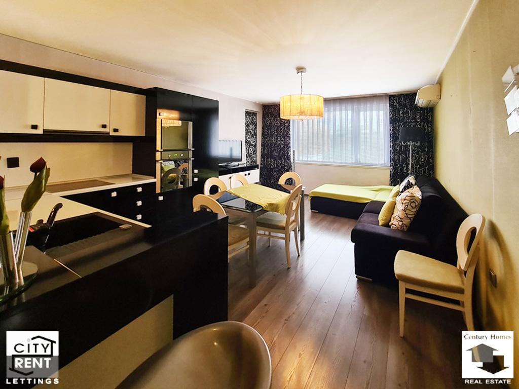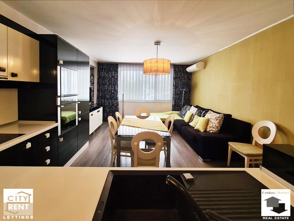 We offer for rent a fully furnished one-bedroom apartment, located on the 1st residential floor in a newly built brick building, in one of the most preferred neighborhoods of Veliko Tarnovo - Kolyu Ficheto. With an area of 60 sq. m., the apartment consists of an entrance hall, corridor, bathroom with toilet, one bedroom, sharing a terrace with a spacious living room with kitchen and dining room with an open concept. The living room is furnished with a comfortable sofa, TV section, TV, dining table and chairs. The kitchen has modern equipment - glass ceramic hobs, extractor hood, built-in oven, microwave, refrigerator and dishwasher, washing machine. The bedroom has a double bed, bedside tables, wardrobe, TV section, TV and a desk. The apartment is west facing and is heated with air conditioners in each room. The building is externally insulated, which contributes to a pleasant temperature in the apartment all year round. Nearby are the Vasil Levski National Military University, a school, two kindergartens, a park, plenty of shops and restaurants, and a bus stop. Please note that all original property prices are in Euros. All prices in GBP and USD are approximate and valid only on the day of uploading the corresponding property.