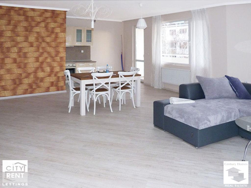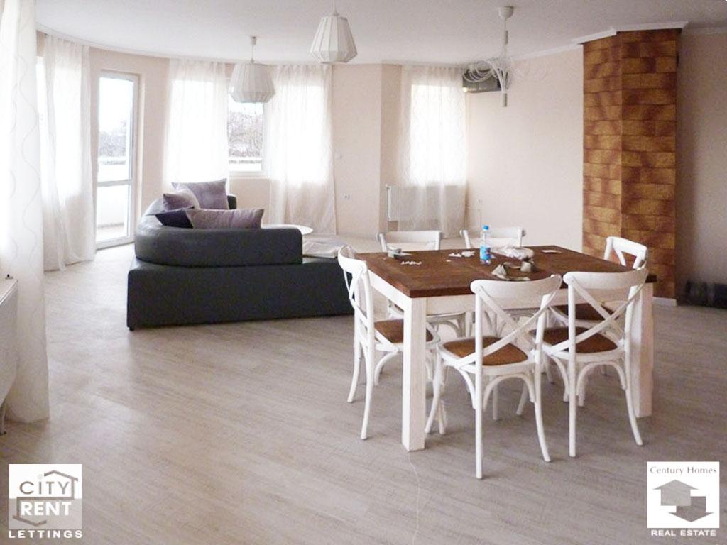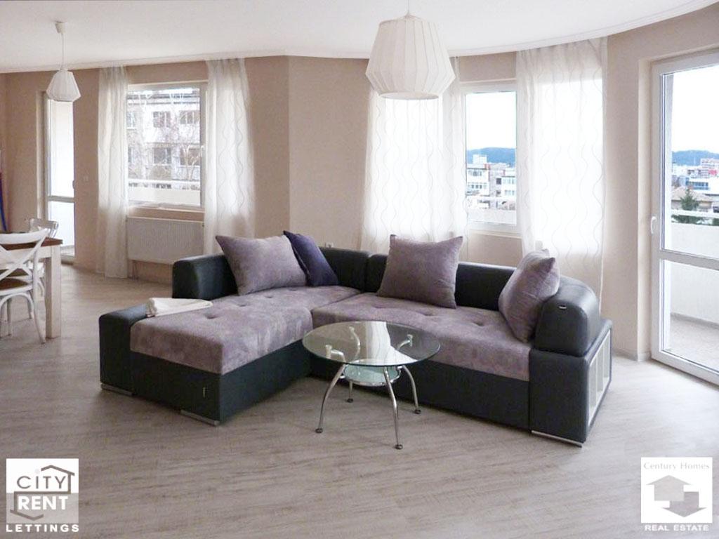 Fully furnished, one-bedroom apartment, for rent in the centre of Veliko Tarnovo. The presented apartment is set on the 3-th floor of a newly-built building and faces south/west. It provides 130 sq.m of living-area which includes: two bedrooms, a spacious living-room with kitchenette, terrace, bathroom/WC,a WC and a corridor. The apartment benefits from: laminated and terracotta-tiled floors, latex-painted walls, PVC window frames, MDF doors, outside insulation. Outside insulation has been rendered, as well. The apartment is air-conditioned. The flat comes fully furnished and is ready to move in. One of the bedrooms has a double bed, and the other has two single beds. The living room is furnished with a comfortable sofa, a coffee table and a dining table with chairs. The indicated price is without VAT, and it includes the use of a garage. Please note that all original property prices are in Euros. All prices in GBP and USD are approximate and valid only on the day of uploading the corresponding property.