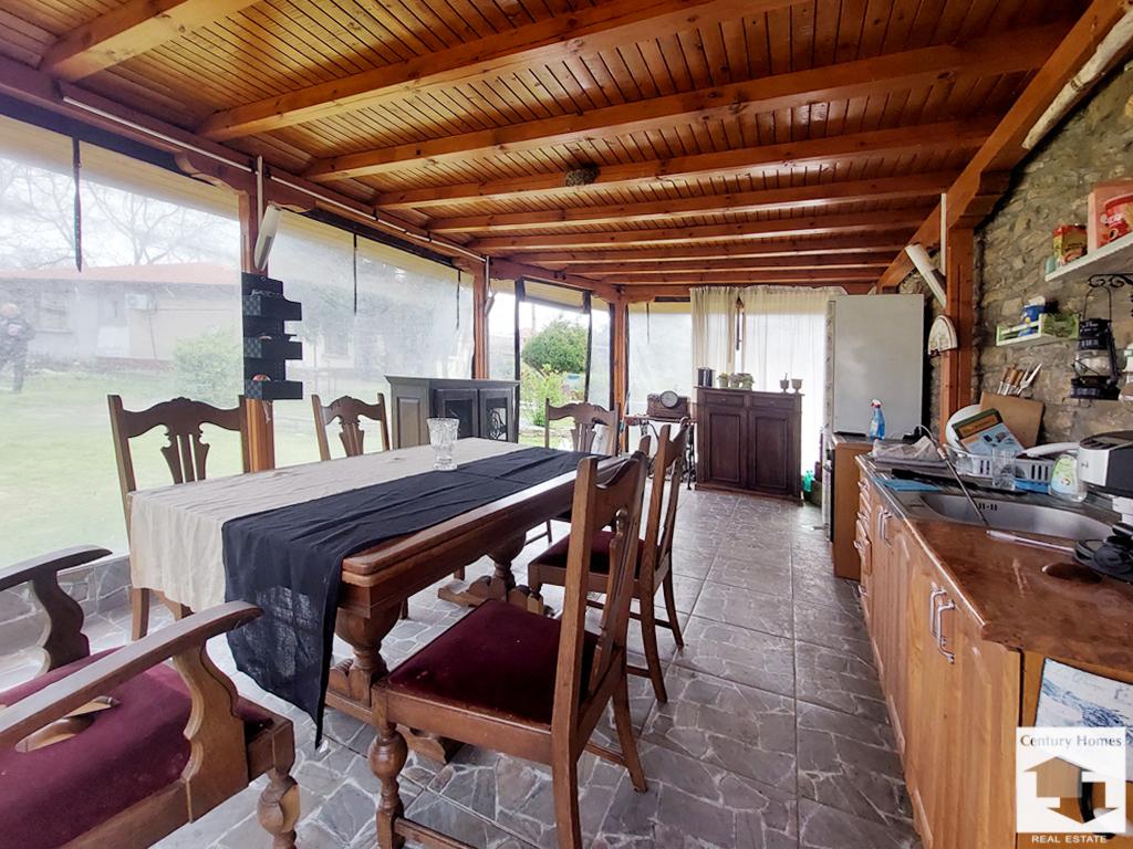 Към нея е долепена масивна каменна стопанска постройка с площ от 86 кв.м, включваща закрита част и навес, подходяща за различни дейности или преустройство.
